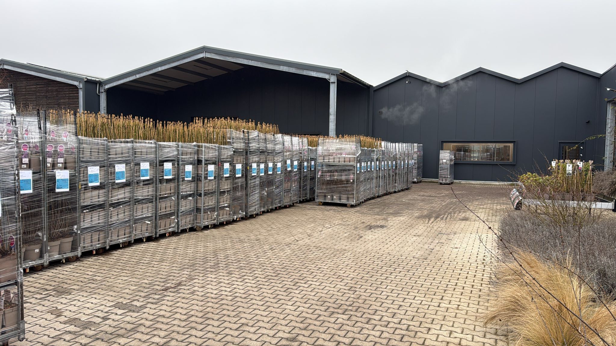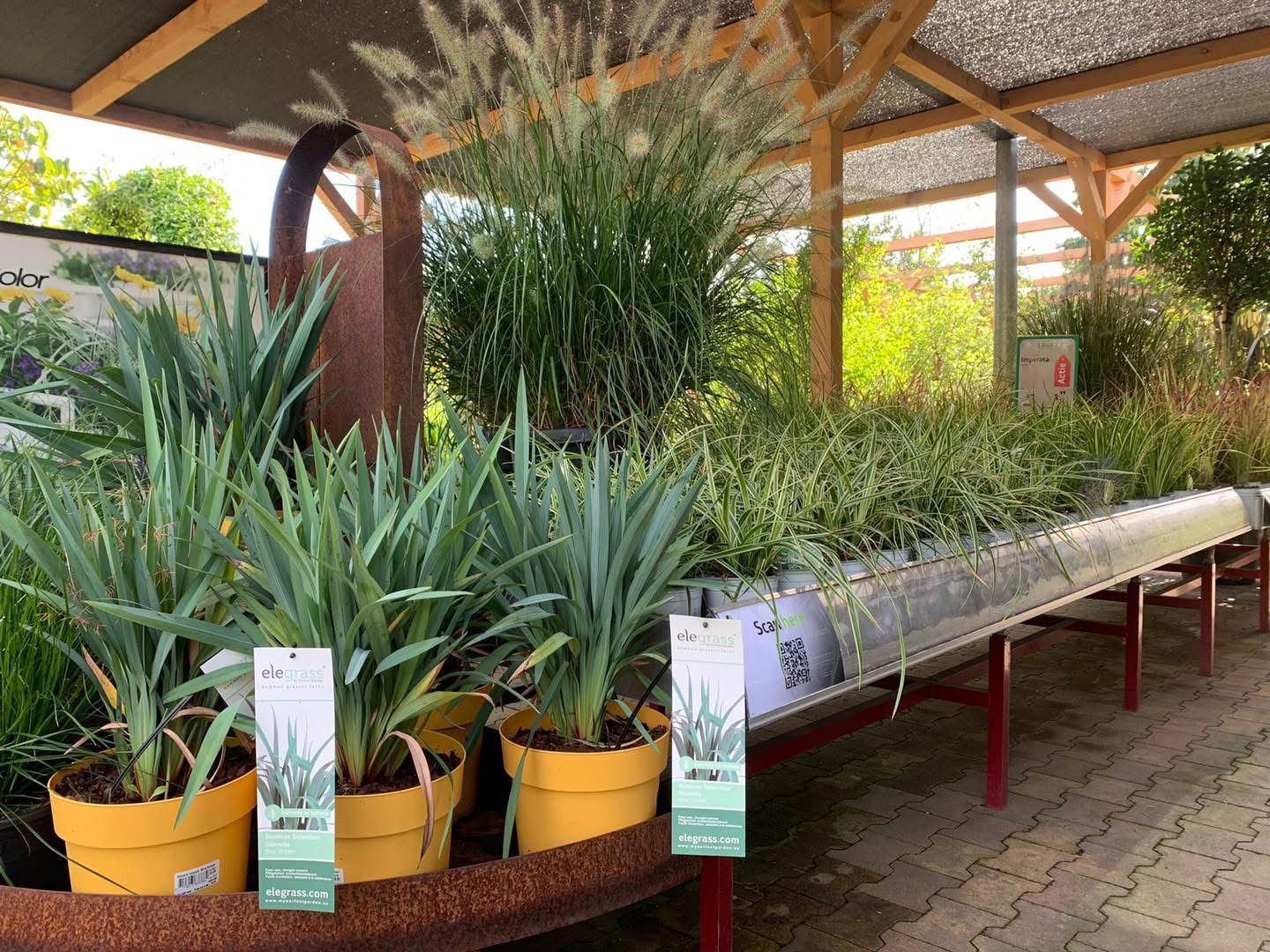 Hofverladung mit einem vielseitigen Sortiment an Kletterpflanzen & Ziergräsern.