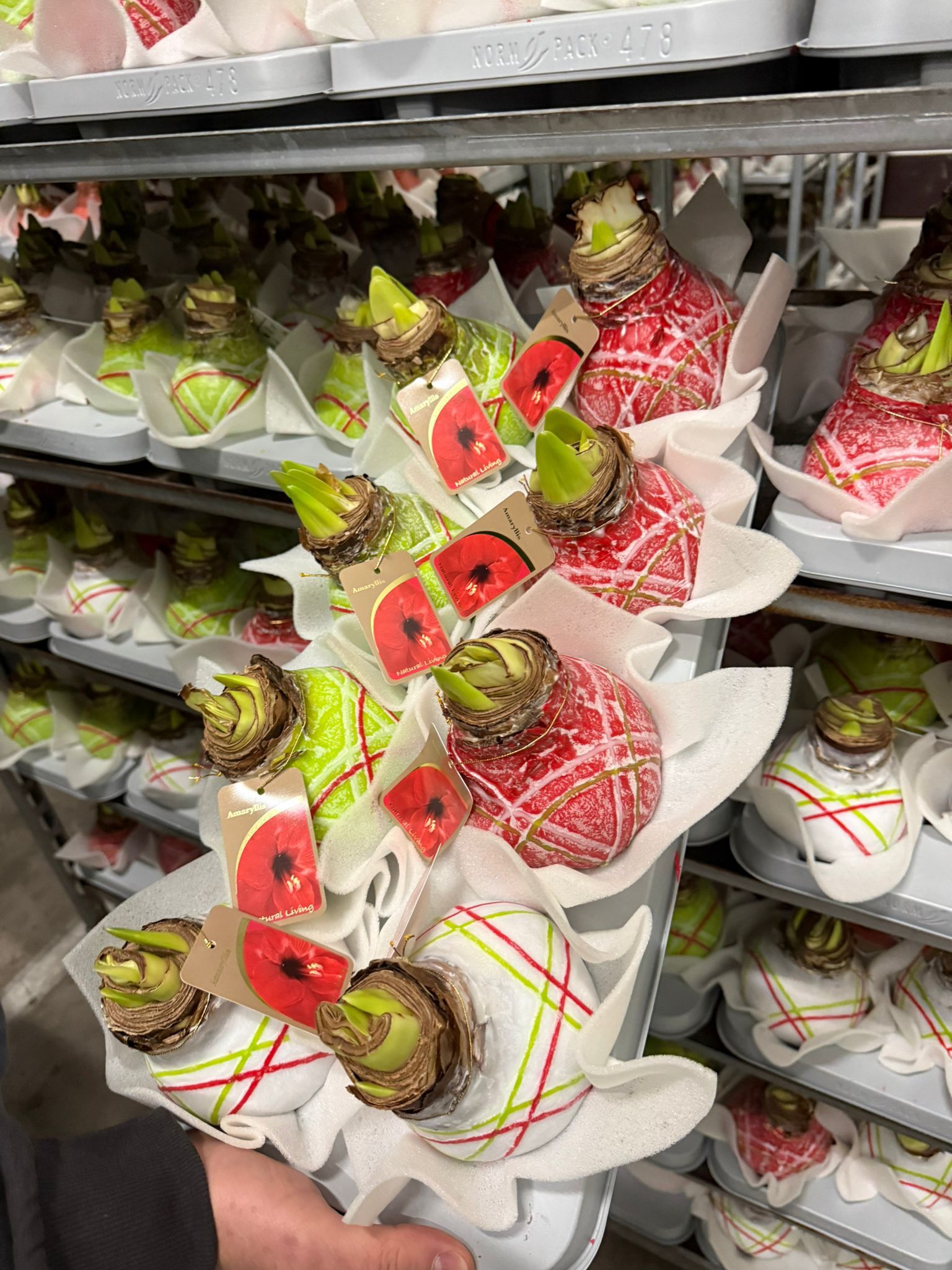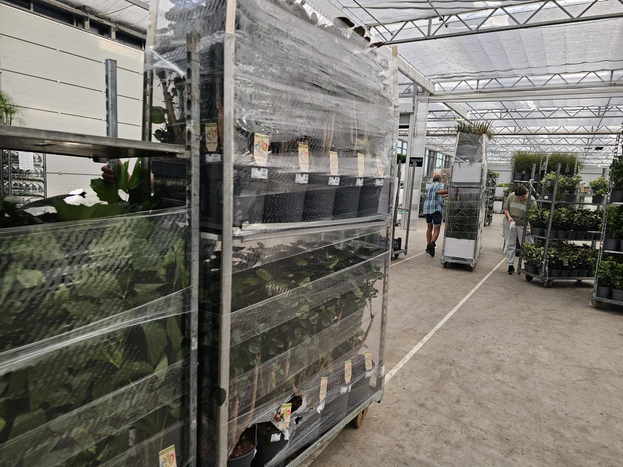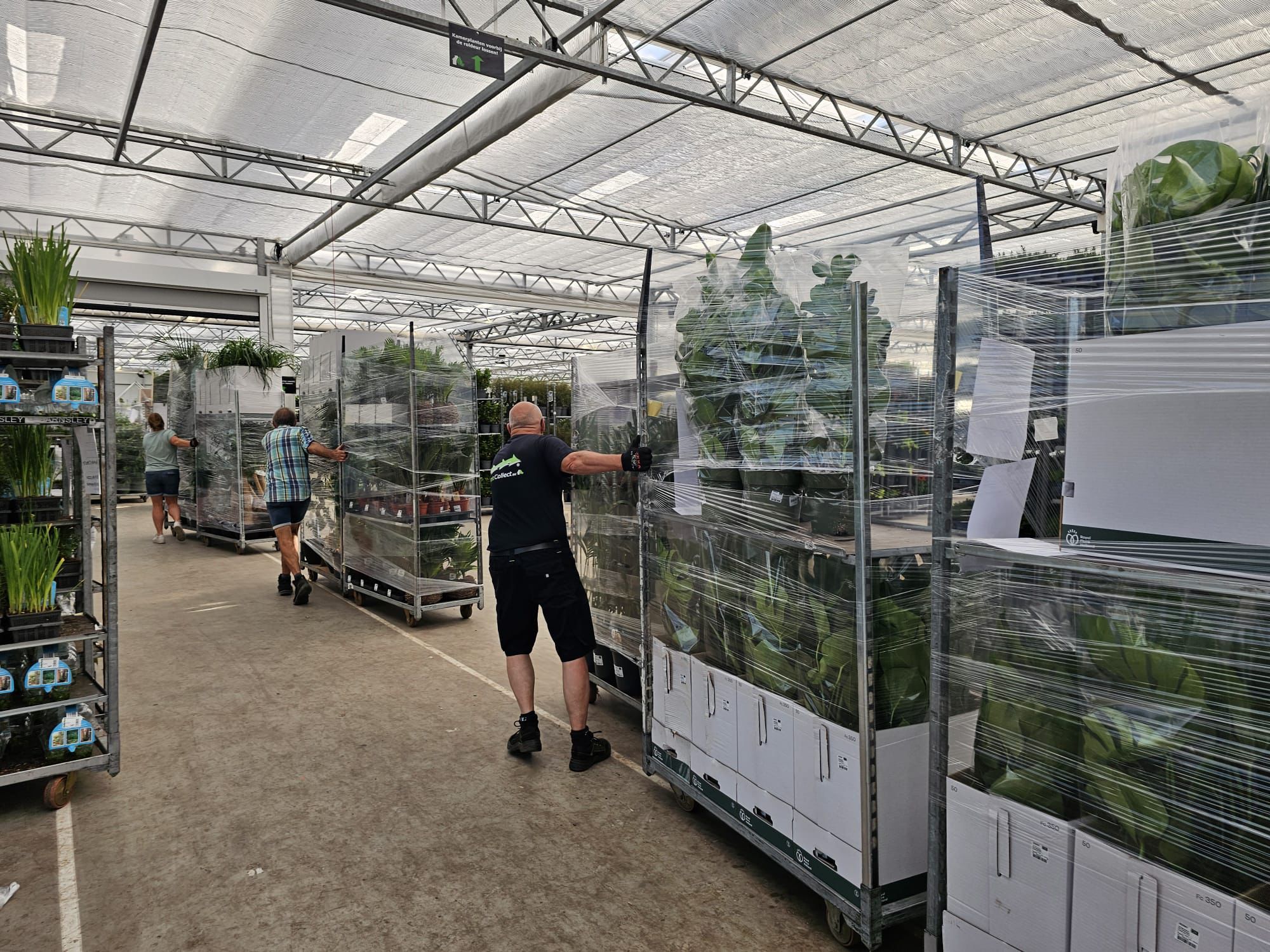 Schon mit der Weihnachtsmütze auf 😊 hat das Logistikteam in der vergangenen Woche die ersten Wagen für die jährliche Aktion „Weihnachtsbaum raus, Zimmerpflanze rein!“ vorbereitet.