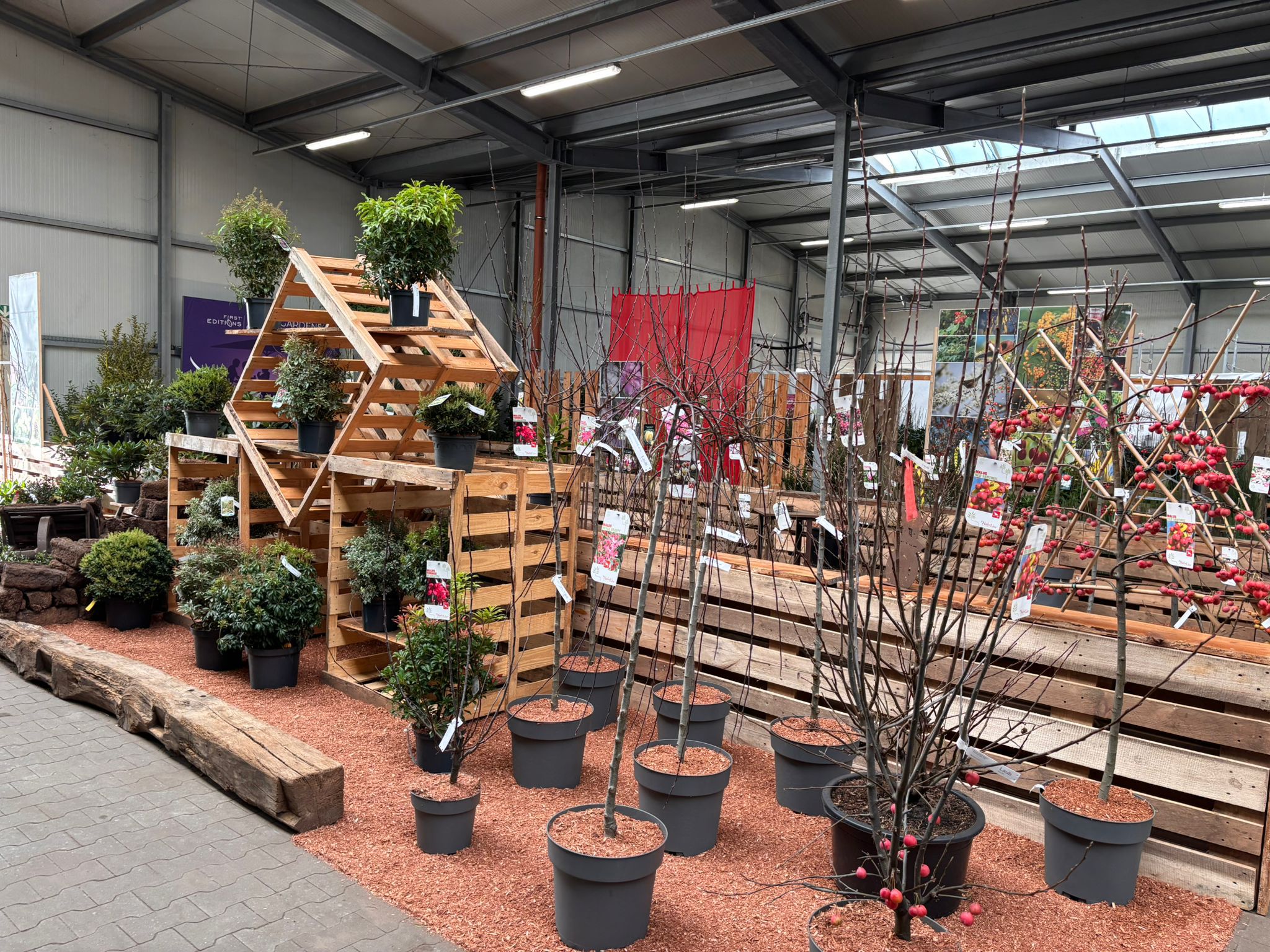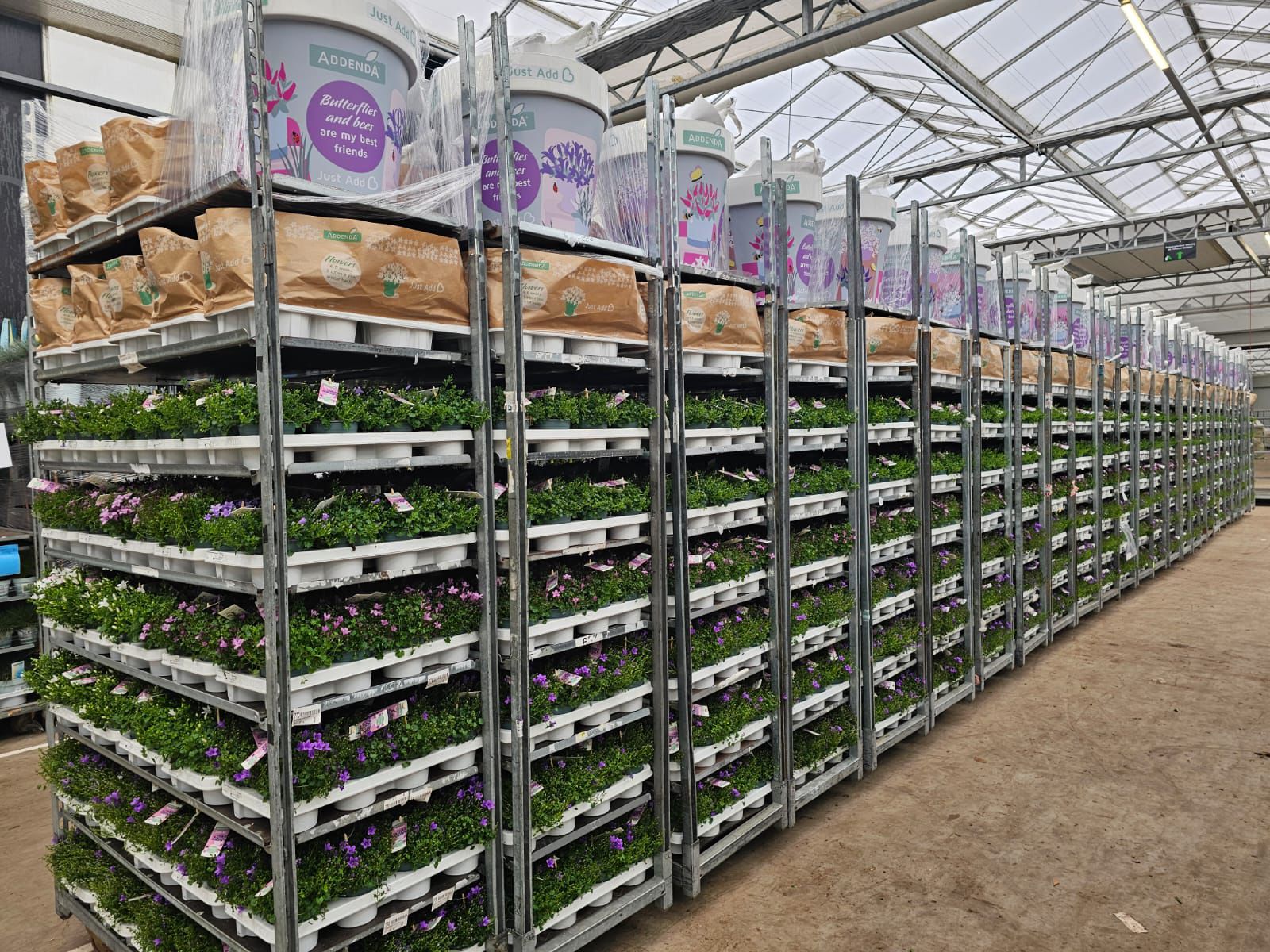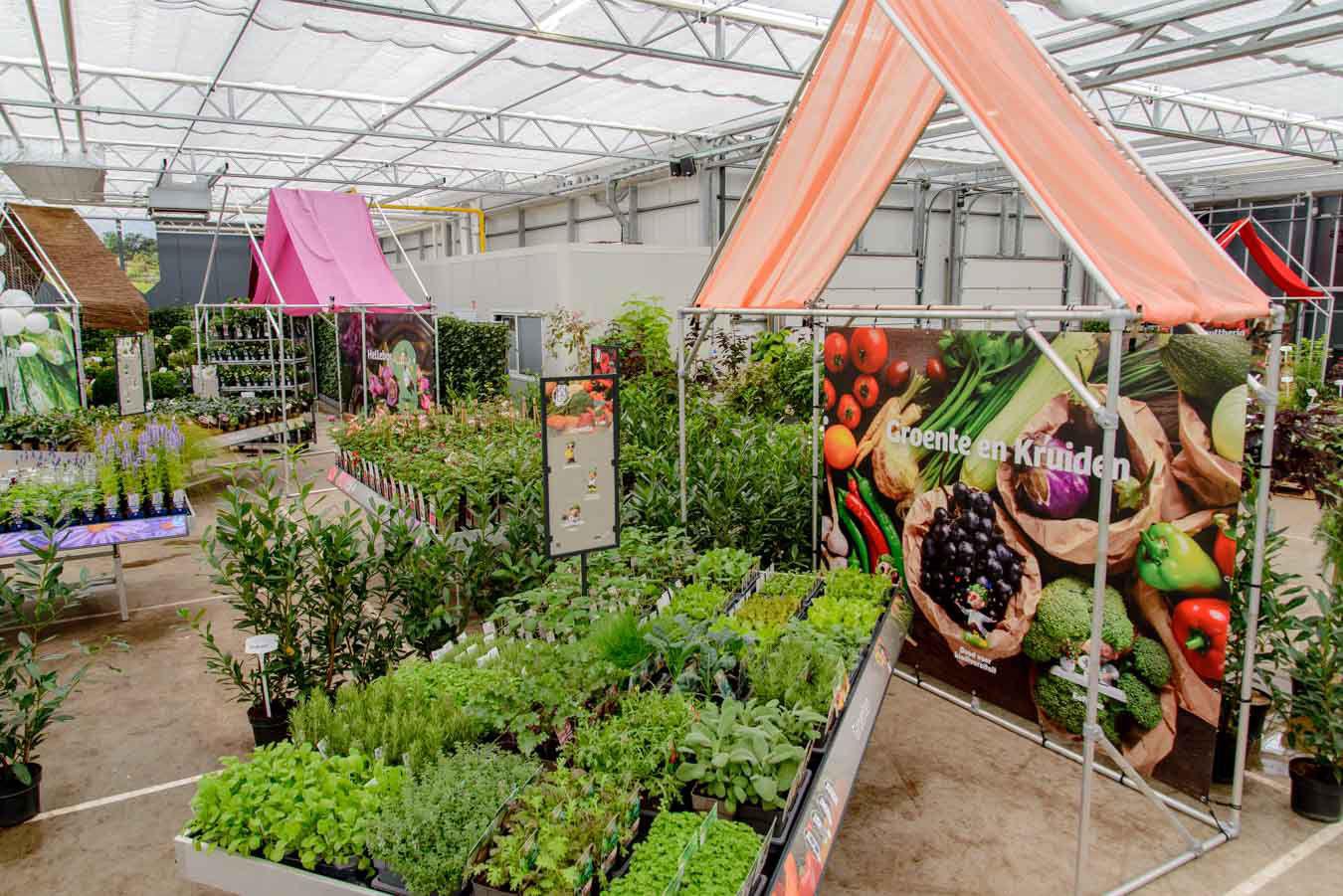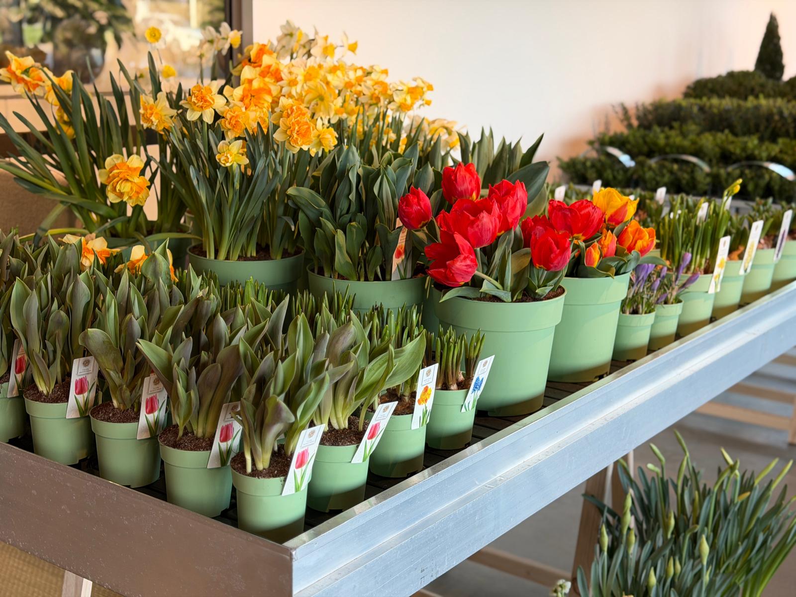 Die Halle ist reich gefüllt mit einem wunderschön vielfältigen Sortiment, darunter Stiefmütterchen, Stauden, Sträucher, Blumenzwiebeln, Kletterpflanzen, Obst- und Gemüsepflanzen sowie eine große Auswahl an Zimmerpflanzen.