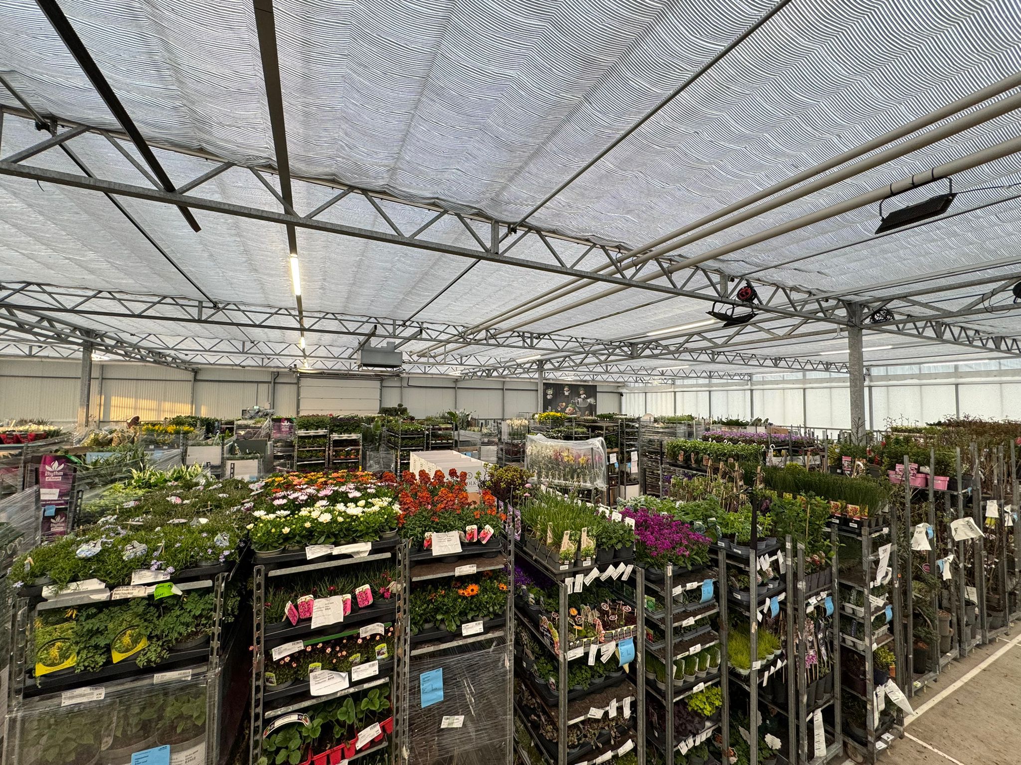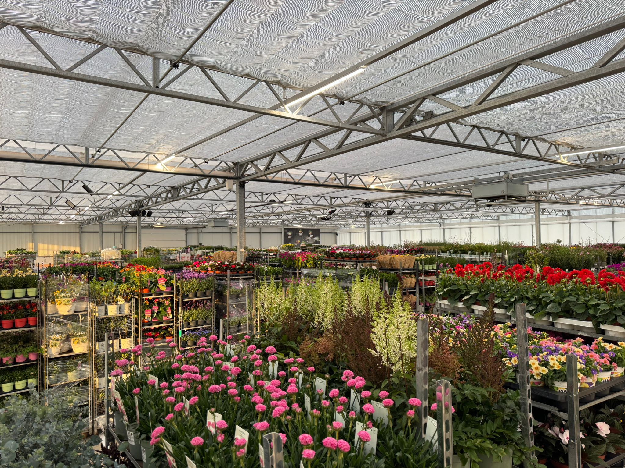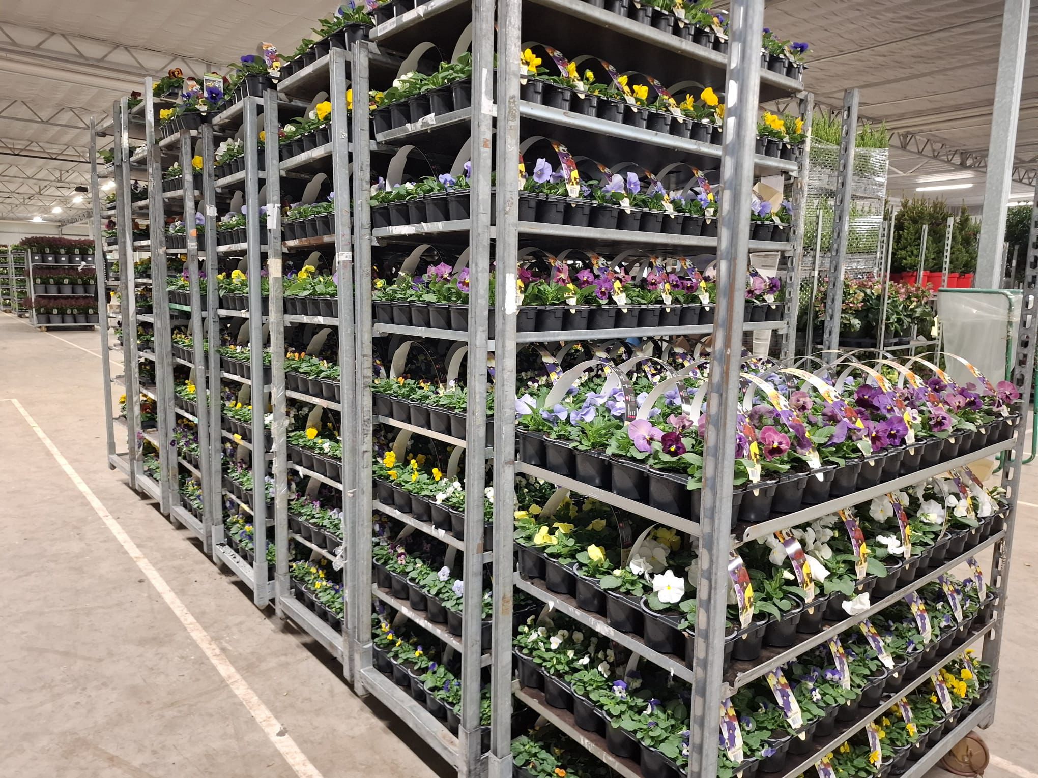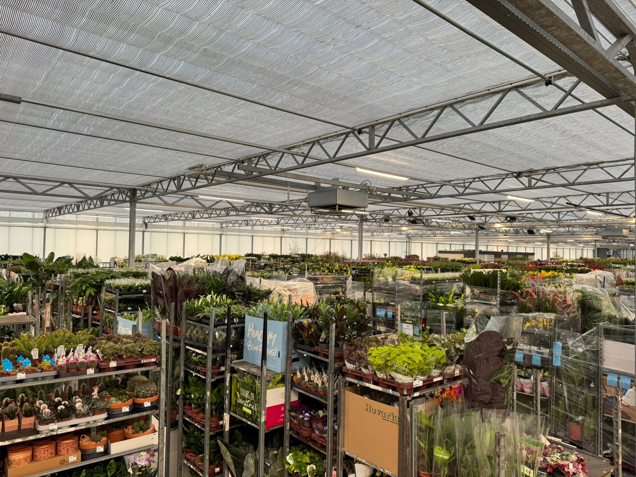 Die Halle ist reich gefüllt mit einem wunderschön vielfältigen Sortiment, darunter Stiefmütterchen, Stauden, Sträucher, Blumenzwiebeln, Kletterpflanzen, Obst- und Gemüsepflanzen sowie eine große Auswahl an Zimmerpflanzen.