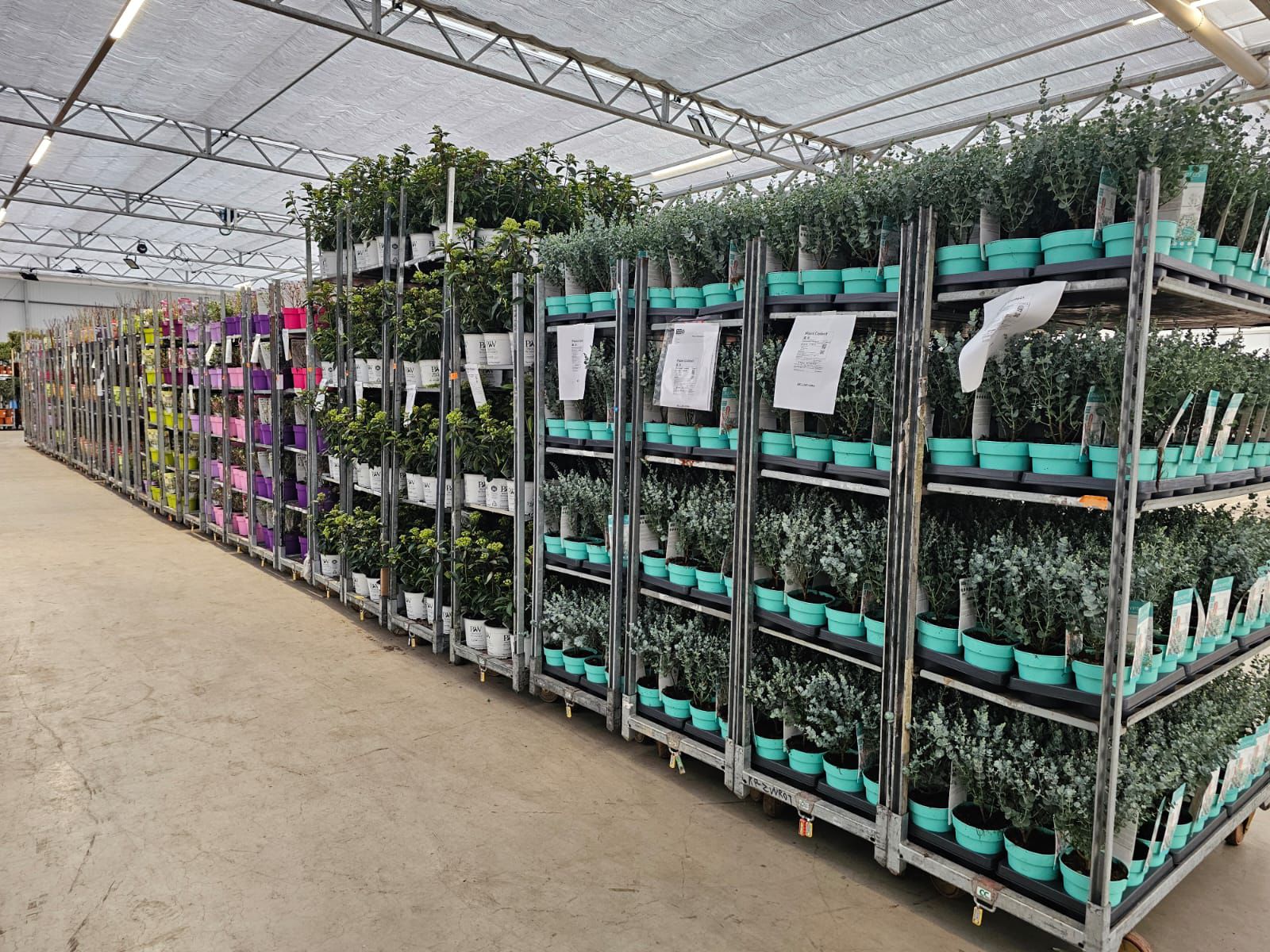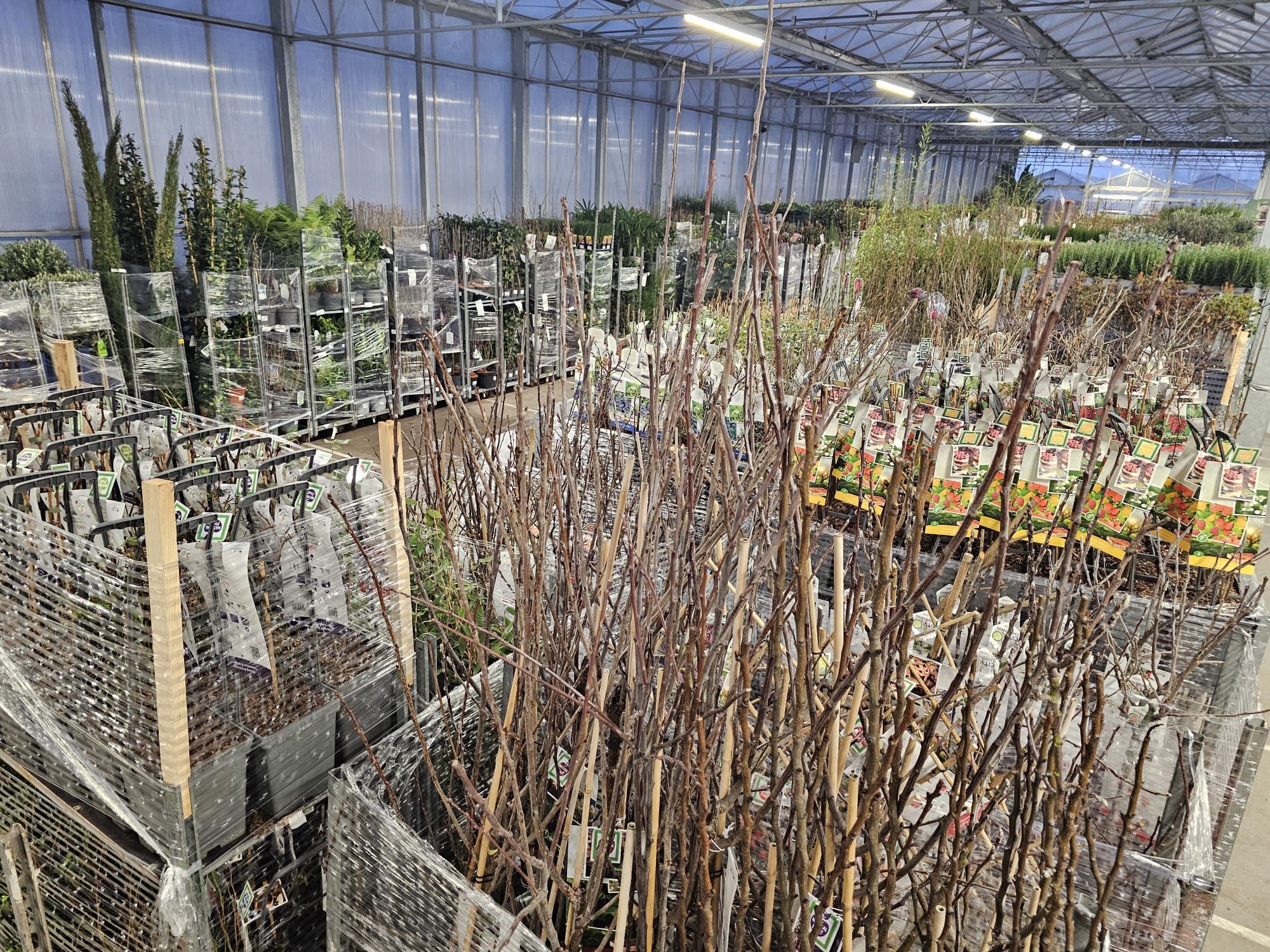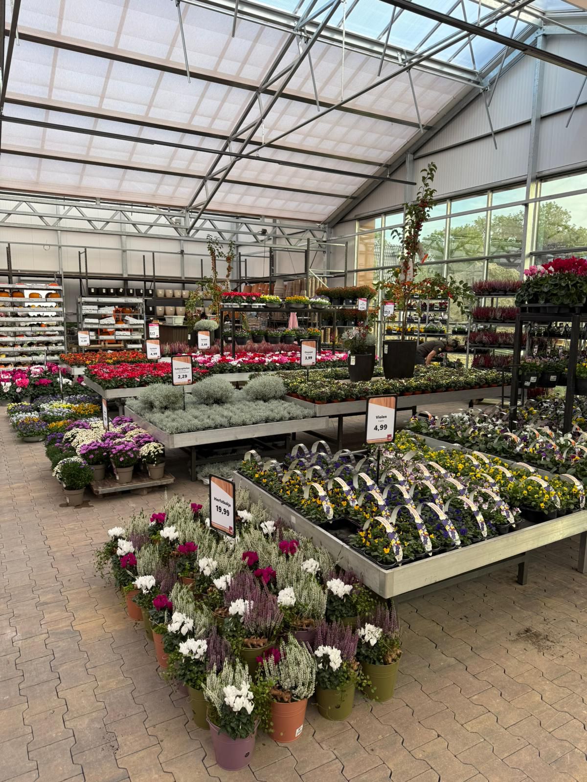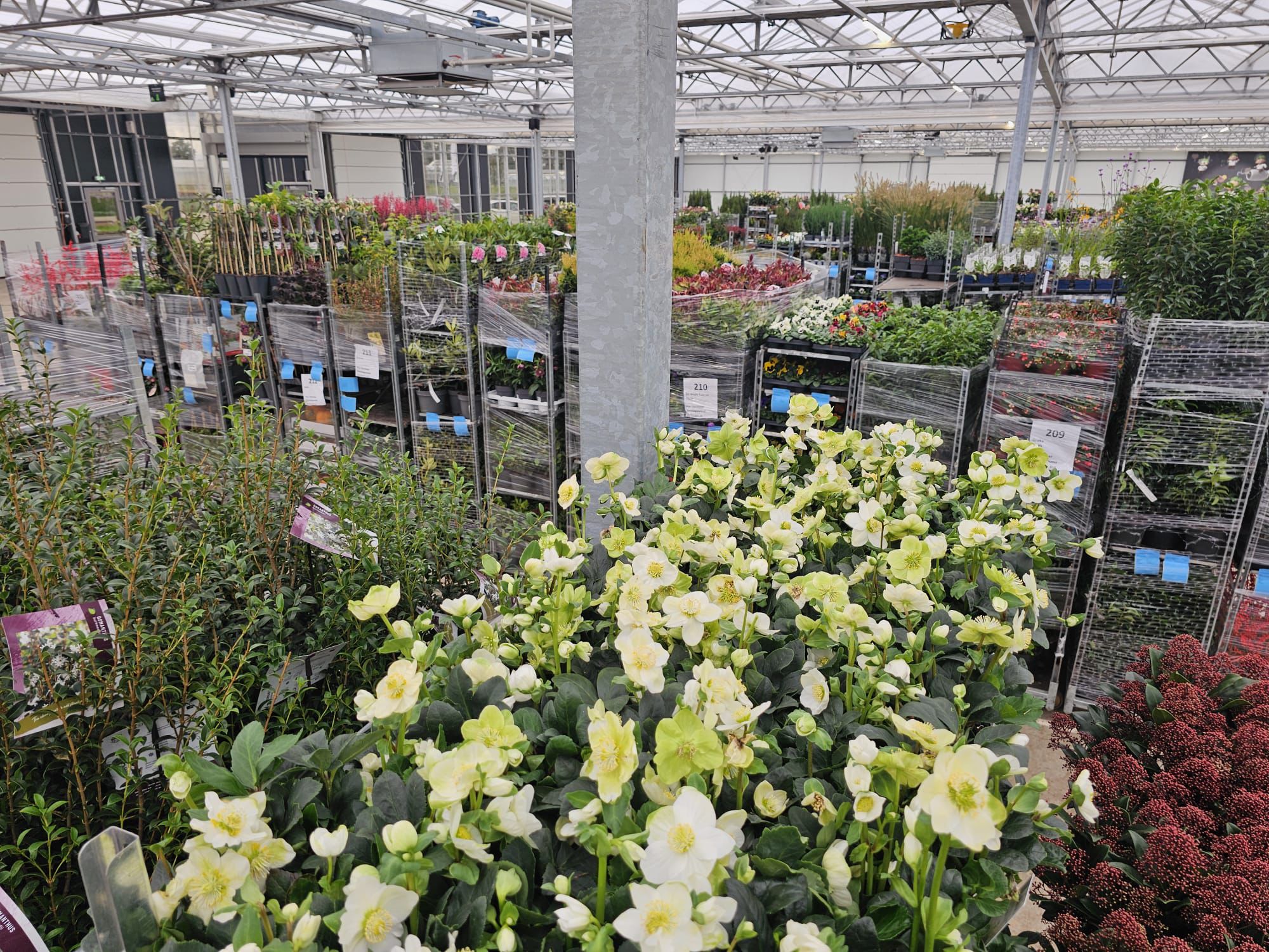 Die Halle ist reich gefüllt mit einem wunderschön vielfältigen Sortiment, darunter Stiefmütterchen, Stauden, Sträucher, Blumenzwiebeln, Kletterpflanzen, Obst- und Gemüsepflanzen sowie eine große Auswahl an Zimmerpflanzen.
